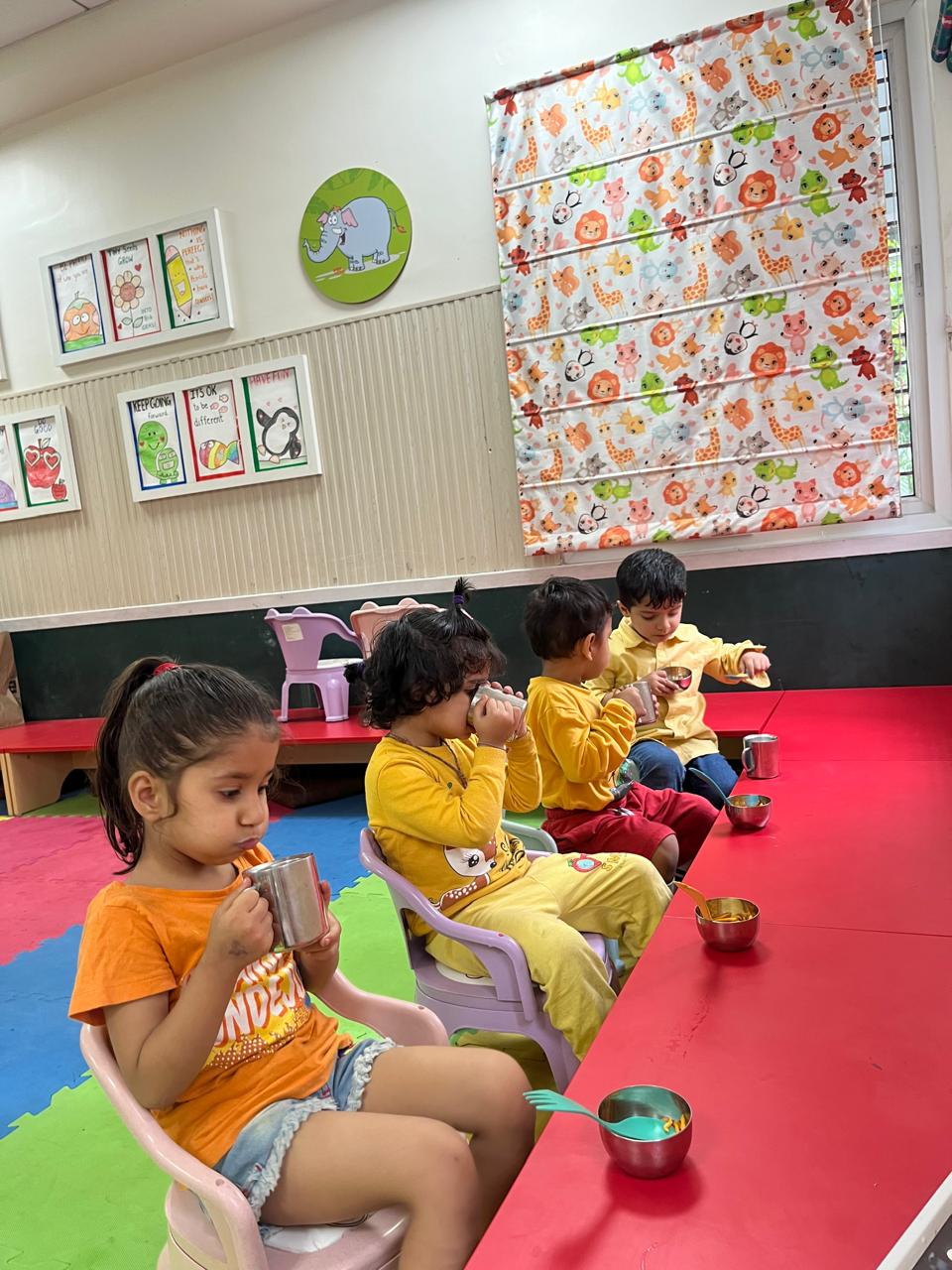 Our team of trained caregivers and early childhood educators ensures personalized attention, helping children build confidence, communication skills, and a love for learning. The daily routine at Nest includes a balanced mix of structured learning, free play, creative activities, storytelling, music, art, and outdoor exploration—making every moment meaningful and fun.